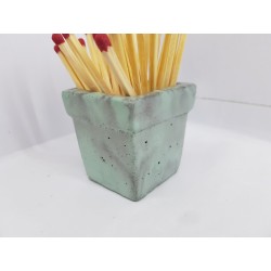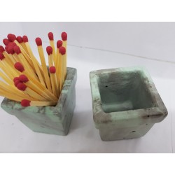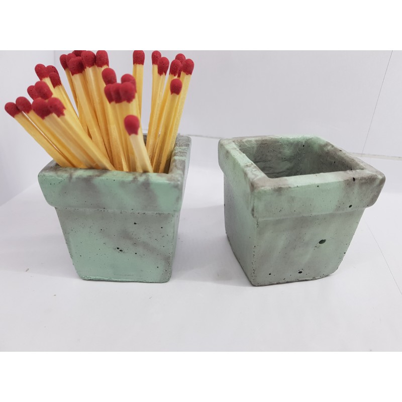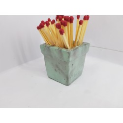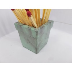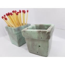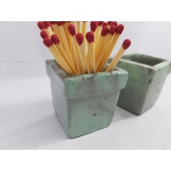 Beautiful handmade concrete match stand, gray with turquoise