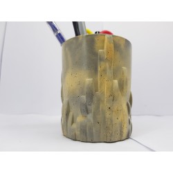 Pen holder, Handmade concrete pen holder, yellow with graphite