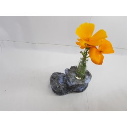 Unique flower vase "Boot" made of glass and concrete, handmade, black with ultramarine