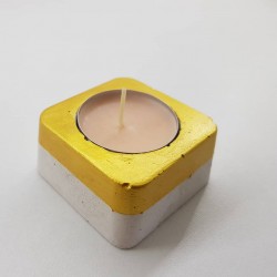 Подсвечник, Красивый подсвечник ручной работы из бетона, белый покрашенный золотой краской