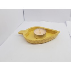 Подсвечник, Подсвечник "Листок" ручной работы из бетона, желтый